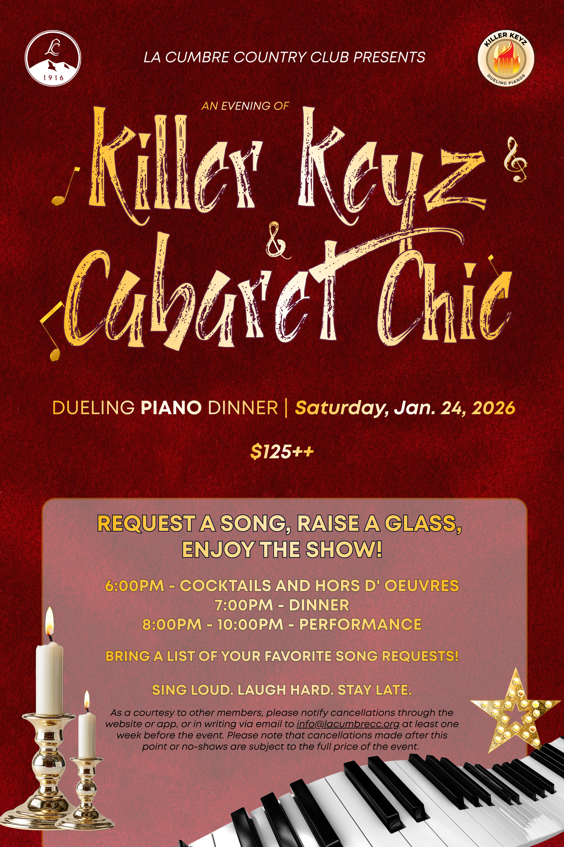As a courtesy to other members, please notify cancellations through the website or app, or in writing via email to info@lacumbrecc.org at least one week before the event. Please note that cancellations made after this point or no-shows are subject to the full price of the event.